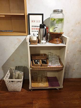 這間店是走半自助式的。餐具、水、置物籃跟最後的餐具回收都要自己來,因此不收服務費!