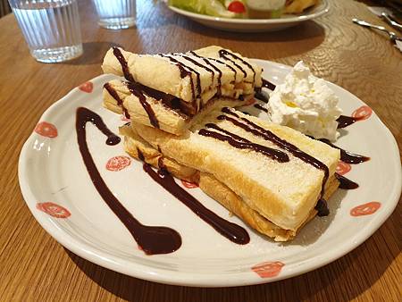 吐司偏軟,不是我偏好的酥脆口感。內餡的部分也沒有培根,小可惜。可是它的醬真的很好吃,是我在土耳其的時候很愛的nutella,超級濃郁。